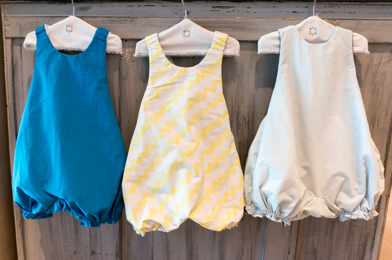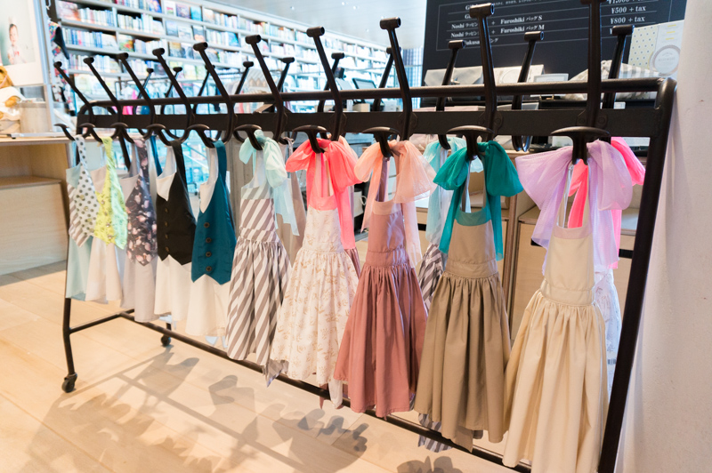 窓際のラックには新商品の画家さんをイメージしたデザインの可愛い"洋服"ではなく、"お食事エプロン"がずらり!