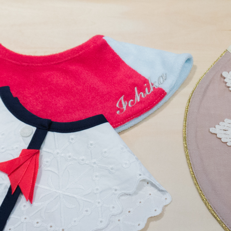 よだれかけには刺繍ができ、