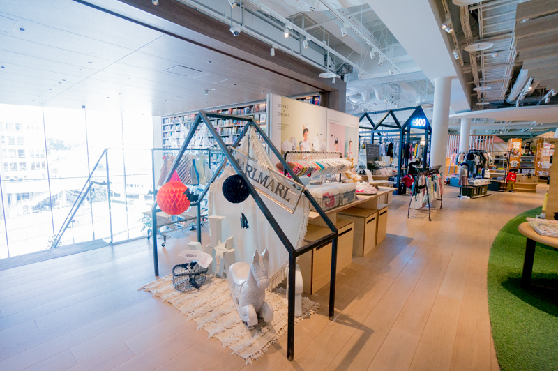 お店の右隣には児童書がたくさん並ぶ蔦屋書店、その奥にはレ・キャトルサンクなどが。
