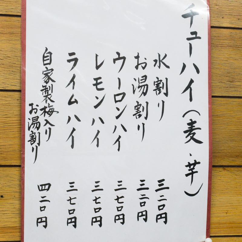 こちらはお酒のメニュー。津田駅前なので、こちらで一杯ひっかけて歩いて帰る方も多いんだそう。