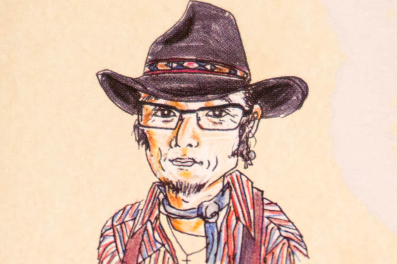 取材時は不在だったのですが、コチラがお父様の似顔絵。