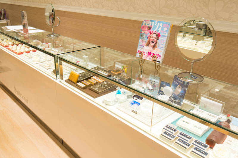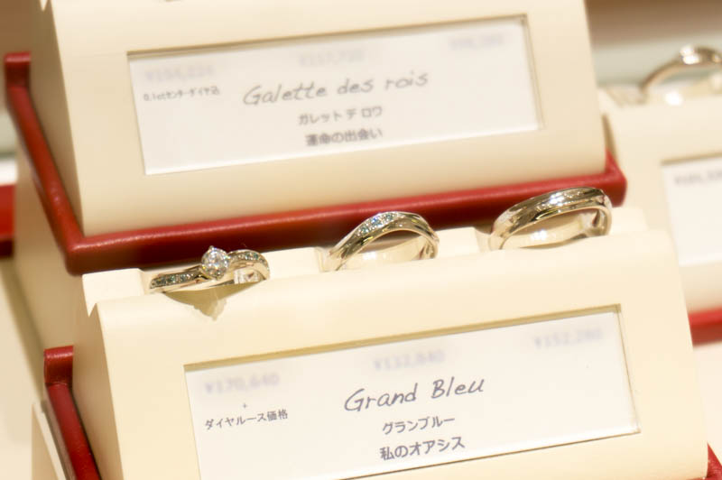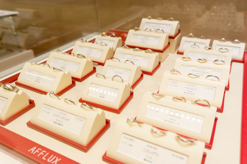 ブライダルリングなどのジュエリーがたくさん並んでいます。
