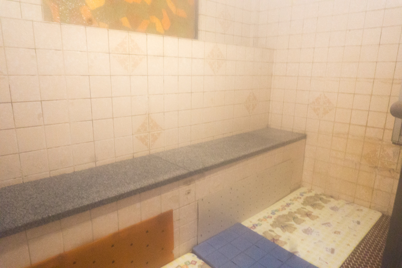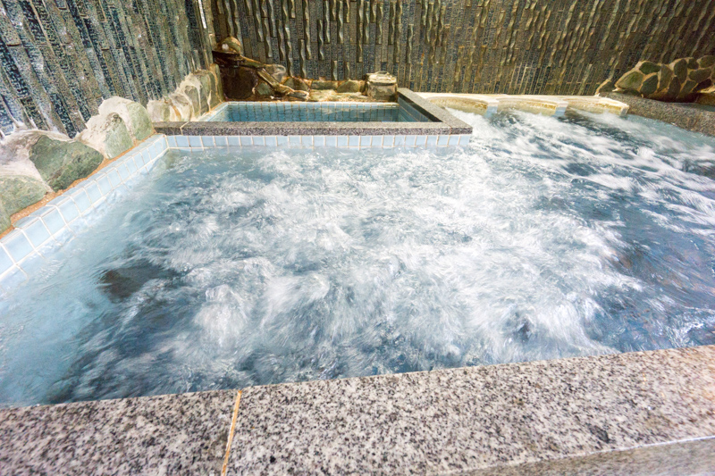 電気風呂は腰掛けるようになっていて、ちょうど腰のあたりをピリピリと刺激してくれます。腰を近づけるとさらに刺激がアップ!
