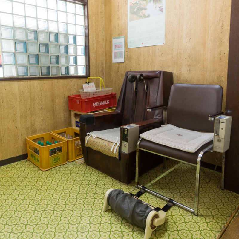 こちらはリラックスコーナー。レトロなマッサージ器が並びます。