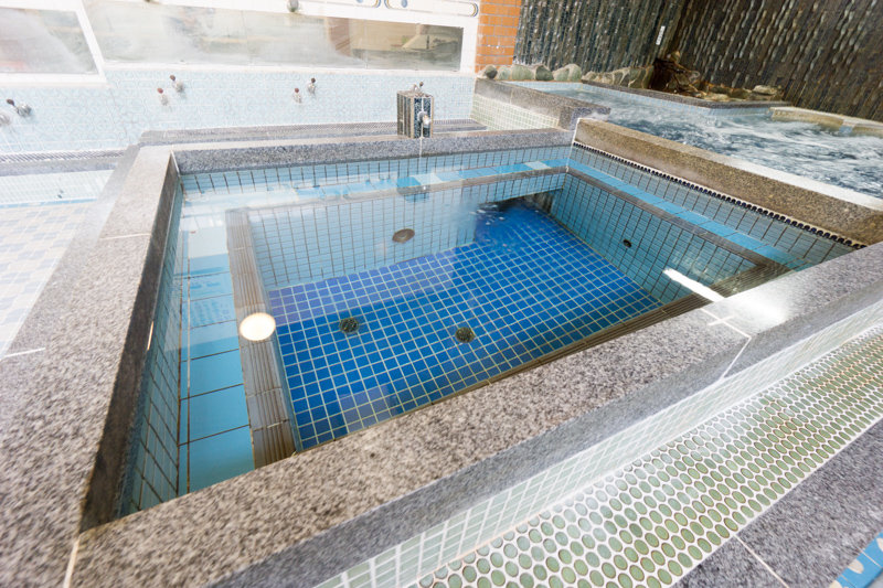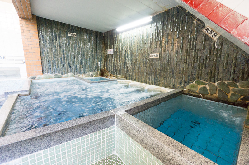 奥は左から気泡風呂・電気風呂・超音波風呂・水風呂のラインナップ。