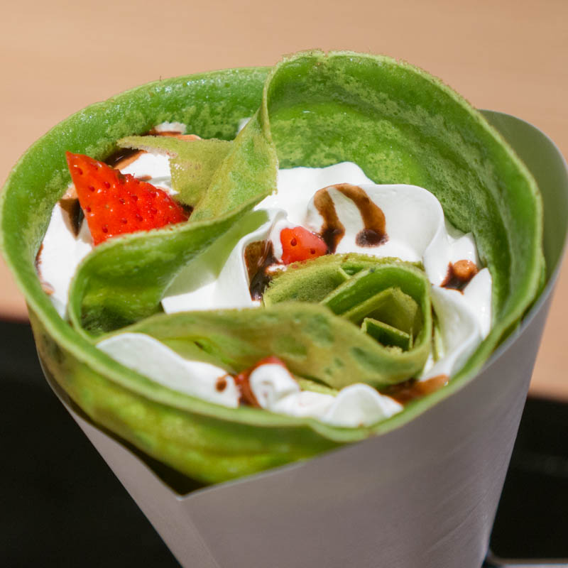 クレープの生地は抹茶・ほうじ茶・玄米茶・プレーンの4種類。