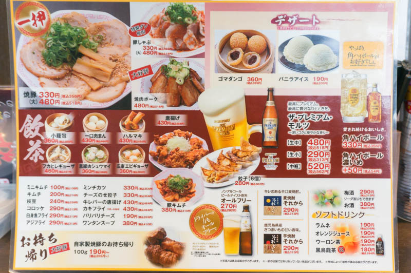 ラーメンのメニューの他にも飲茶(ヤムチャ)や一品物のメニューも。