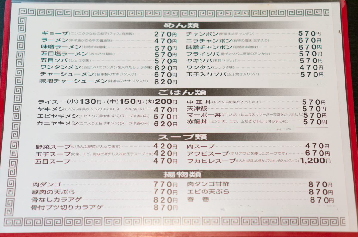 めん類・ごはん類・スープ類・揚物類メニュー