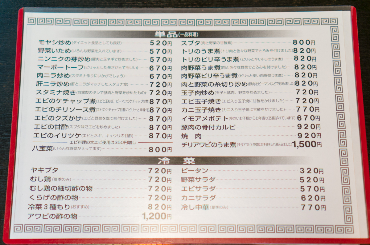 単品(一品料理)・冷菜メニュー