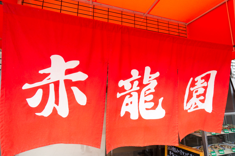 鮮やかな赤いのれんをくぐって…