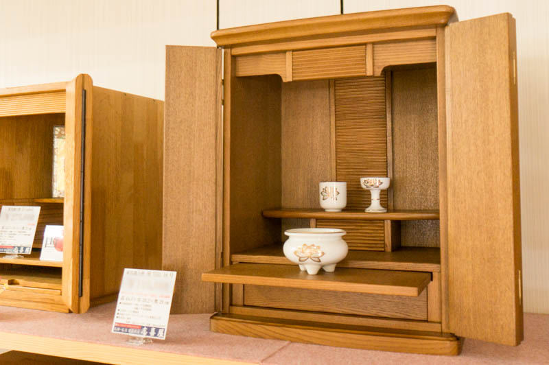 ほかにも、タンスや棚の上に置けるコンパクトなサイズの上置仏壇というものも。