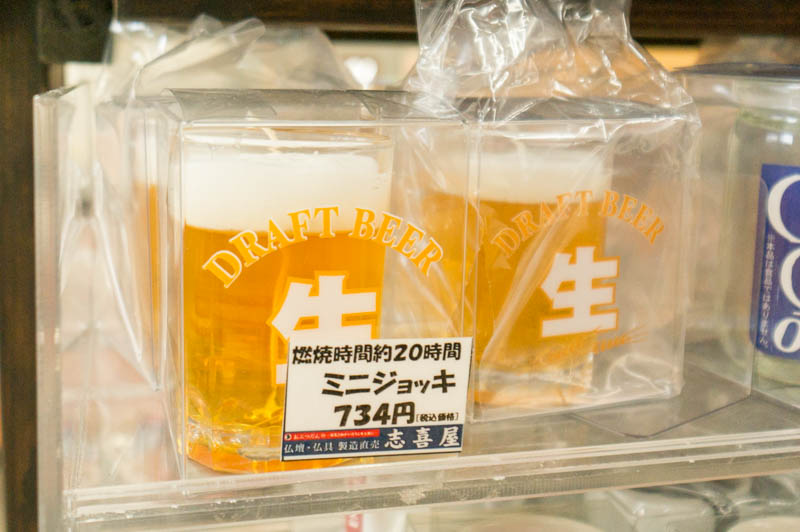 ビール風のデザインのろうそくなどユニークなものもたくさんあります。