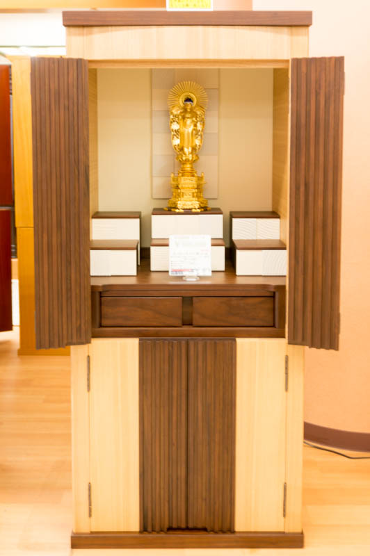 お店に入ってスグのところには、なんだか今までの『仏壇』のイメージとは違ったデザインの仏壇が。