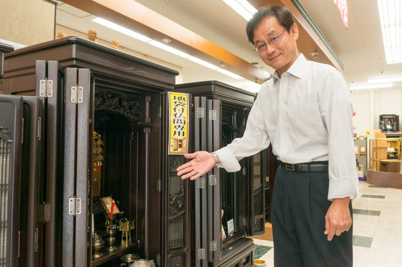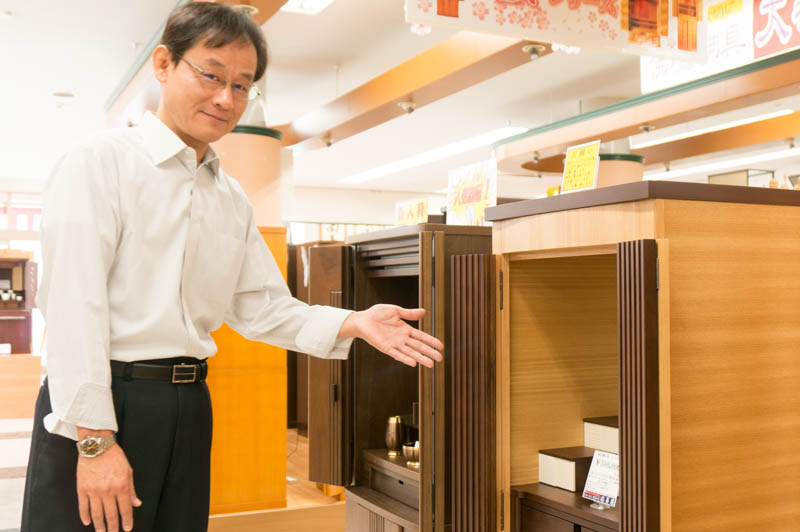 穐西(あきにし)店長:「一般的な仏壇のイメージはこの唐木仏壇なんじゃないでしょうか。」