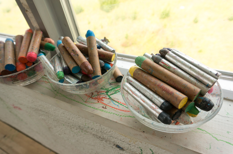 でっかい窓のキャンパスに思いっきりお絵かき!