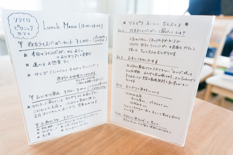 ソライロピクニックカフェでは、こだわりのおにぎりやランチなどもいただけます。