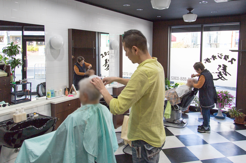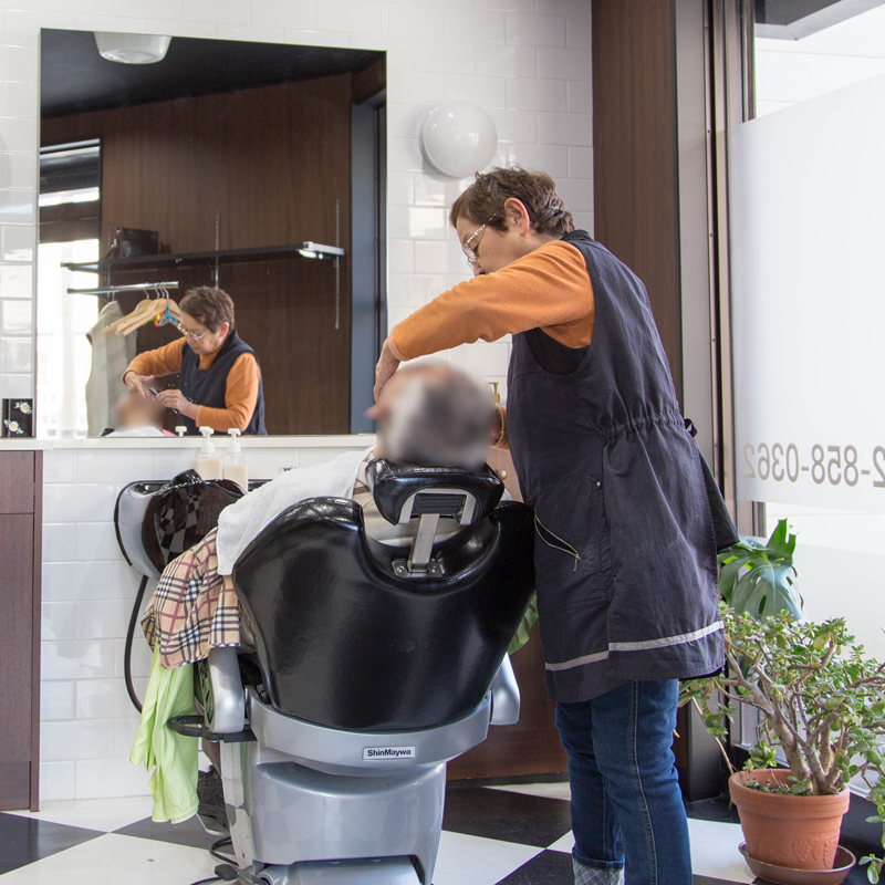 顔剃りをしているのは店主であるお母さん。
