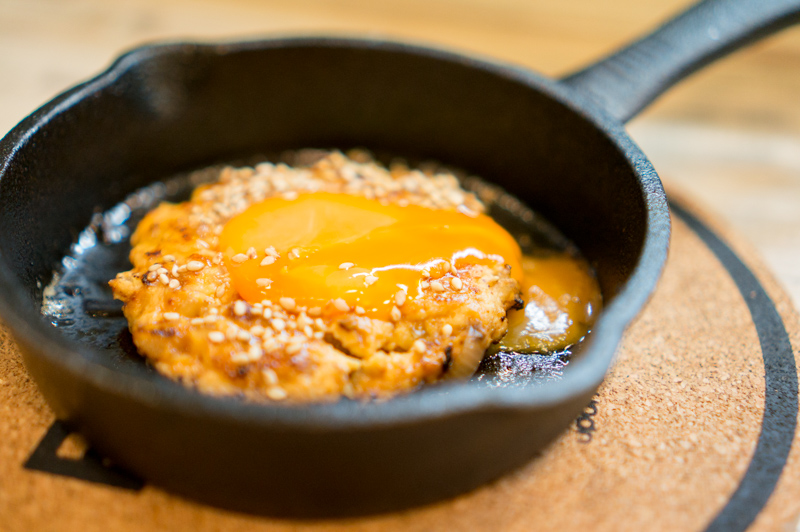 あつあつ自家製豆腐入り月見つくね480円(税別)