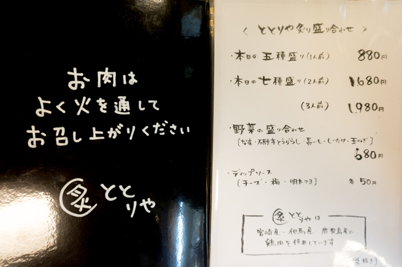 炙ととりやでは宮崎産・鹿児島産・但馬産の鶏を使用しているとのことで、オーナーさんが美味しいと思った食材を取り揃え、あつかっているそうですよ。