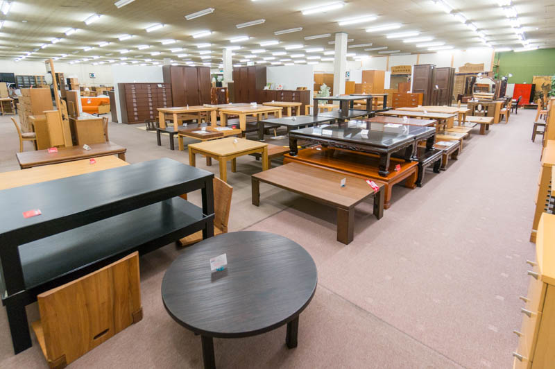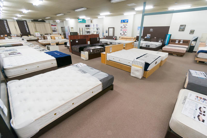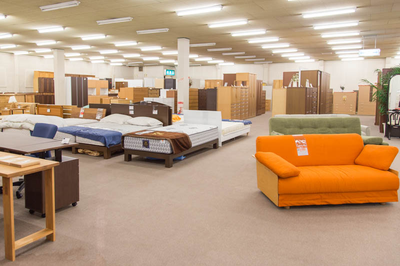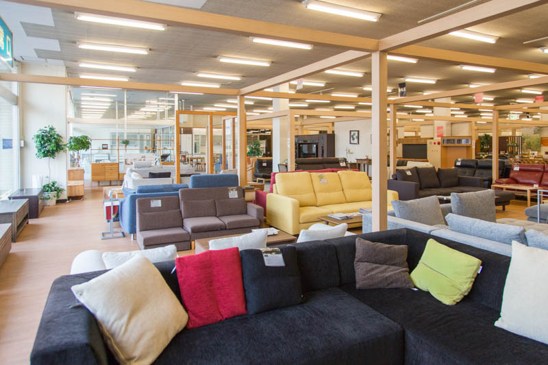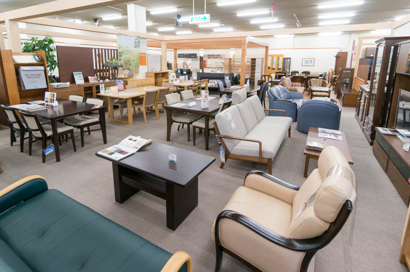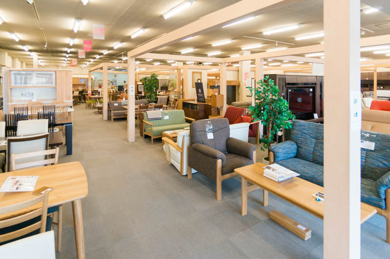 家具団地内でも1、2を争う広さの売り場面積ということもあり、様々な種類の家具が所狭しと並んでいます。