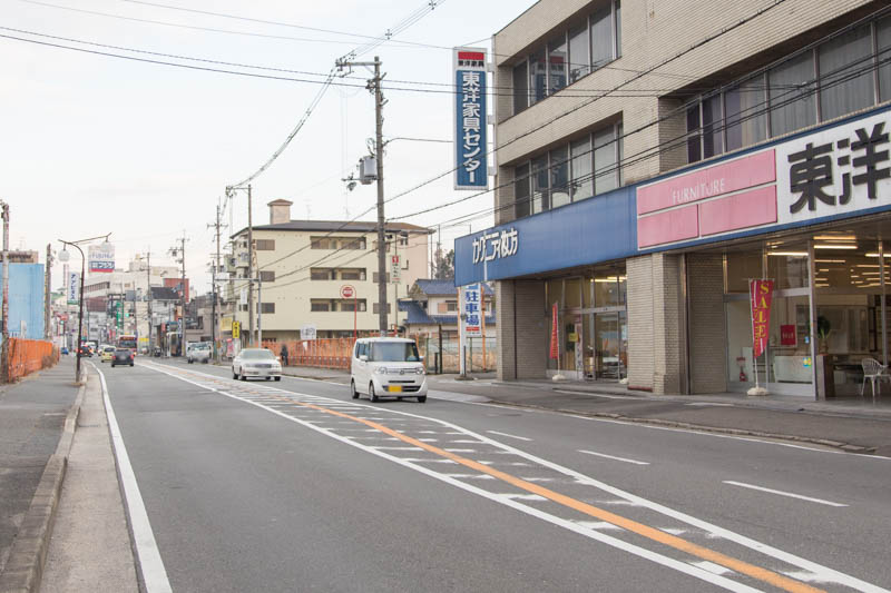 国道一号線側から見ると、家具団地の最初の家具屋さんになります。