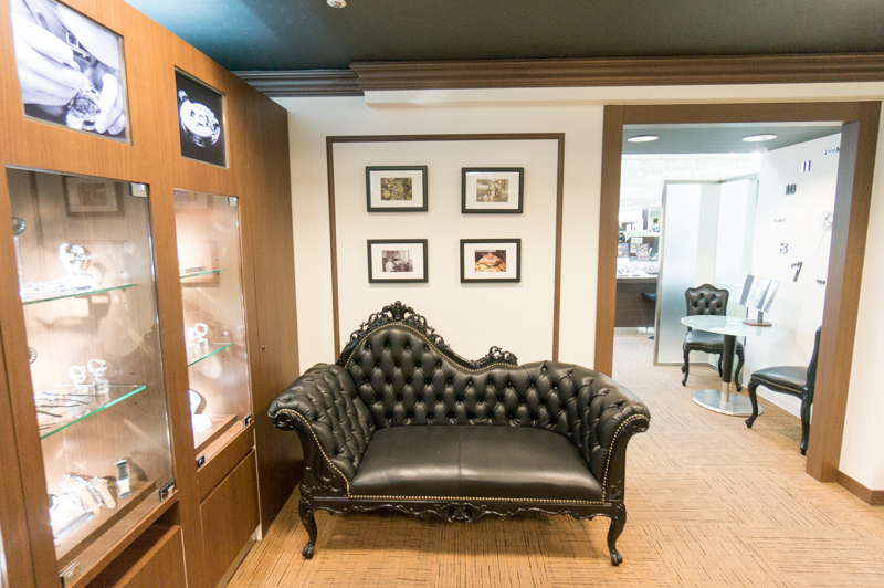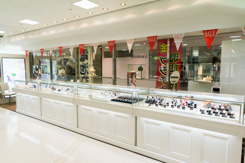 時計以外にもネックレスや指輪などのジュエリーが並び、販売だけではなく修理も承っているとのこと。(→宝石修理の参考価格はこちら)