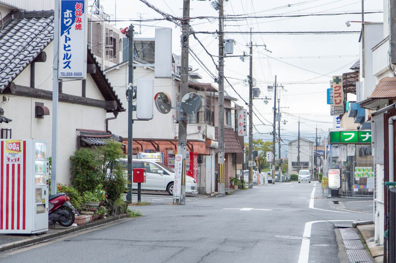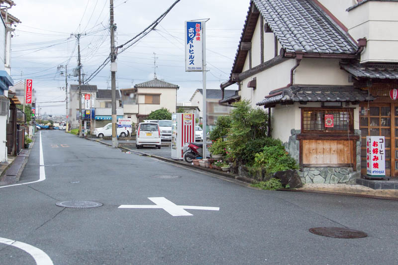 反対方向へ道なりに進むとパチンコ&スロットエイト枚方店のある道路に突き当たります。