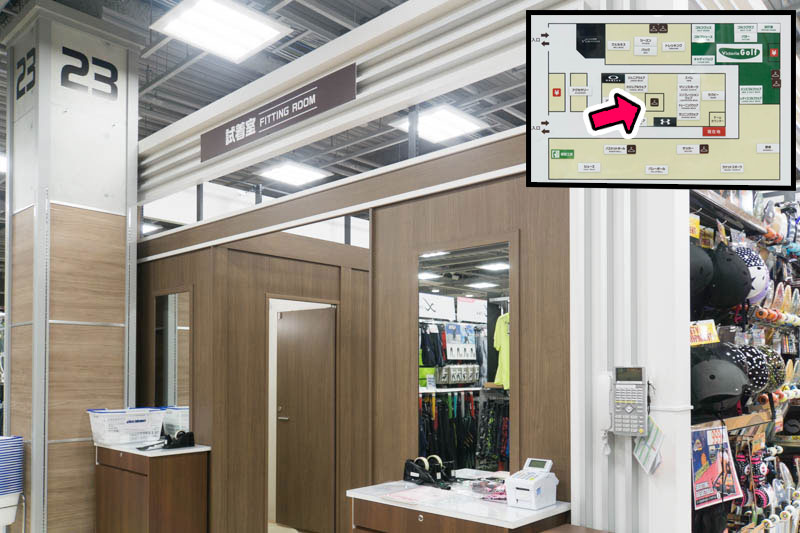試着室のちかくにはJボードなどの子ども用品がありました。