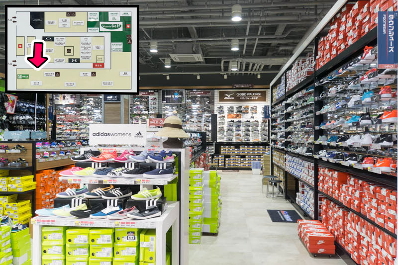 入ってすぐ右側はシューズコーナー。