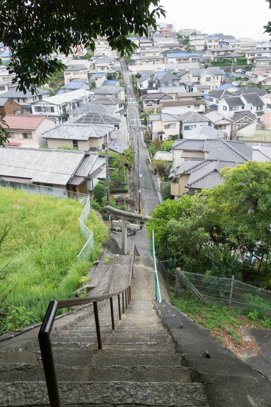(狩尾神社から階段を見下ろす。投稿をうけて見に行ってみましたが、こんな神社があるとは知りませんでした…)