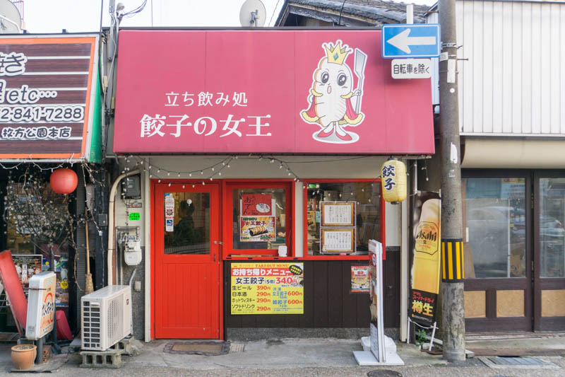 (枚方公園駅近くにある「立ち飲み処 餃子の女王」。餃子のテイクアウトも可能です)