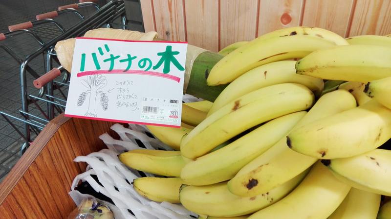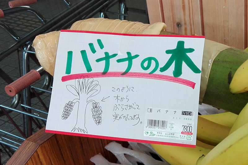 バナナの木をディスプレイとして使用した理由は、写真中の絵にもあるとおり、バナナについて知ってもらいたいという意図があったそうです。
