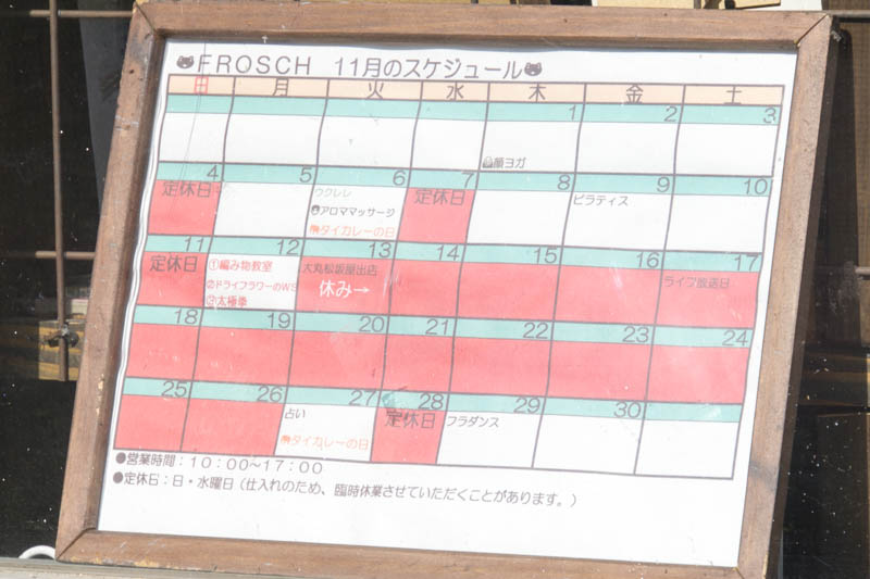 11月はほとんど休み(大丸松坂屋に出店されてる)のようでしたので、放送を見て今月「FROSCH」に行きたいと思った方は注意です!