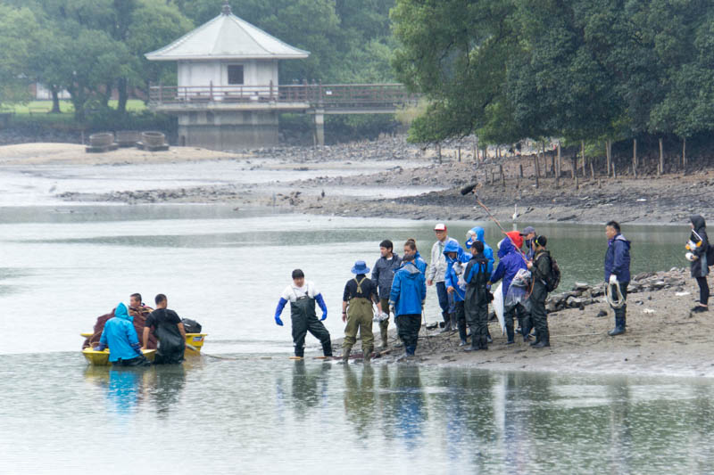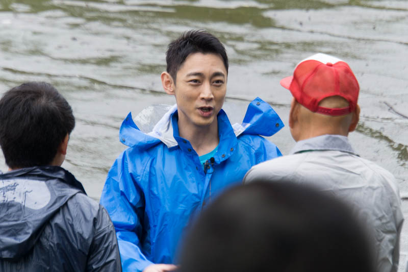 収録はそんな山田池の東側からスタート。今日の作業に参加される方々と、写真右側のブルーの服を着た小泉孝太郎さんが合流。