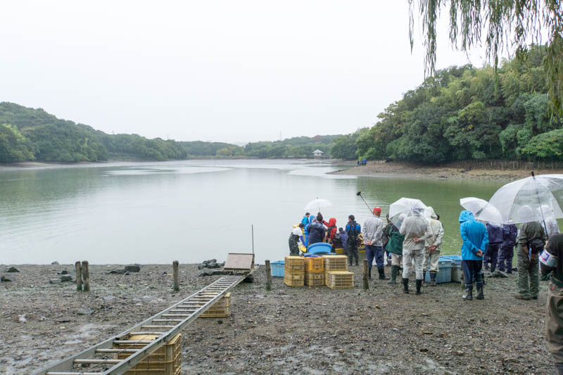 この日は雨が降っていたこともあり、池の水を全部抜いたわけではないので、これから池干しの期間である12月末にかけて徐々に抜いていくそうです。