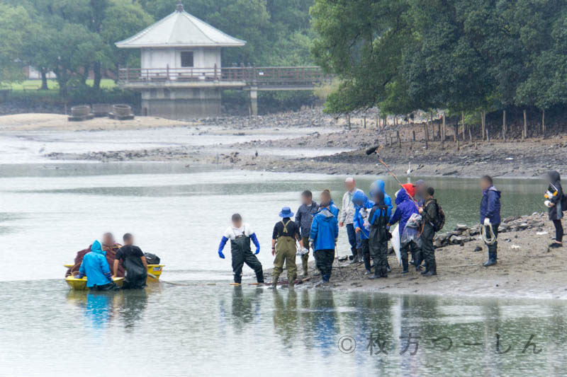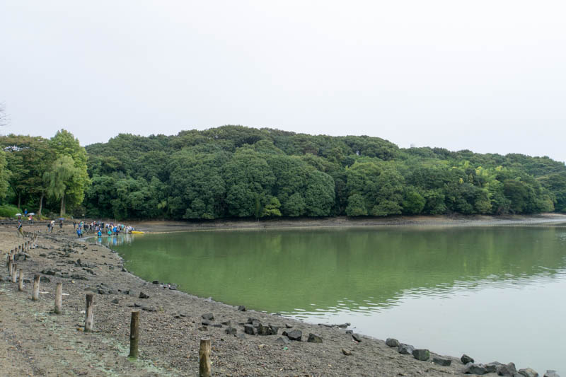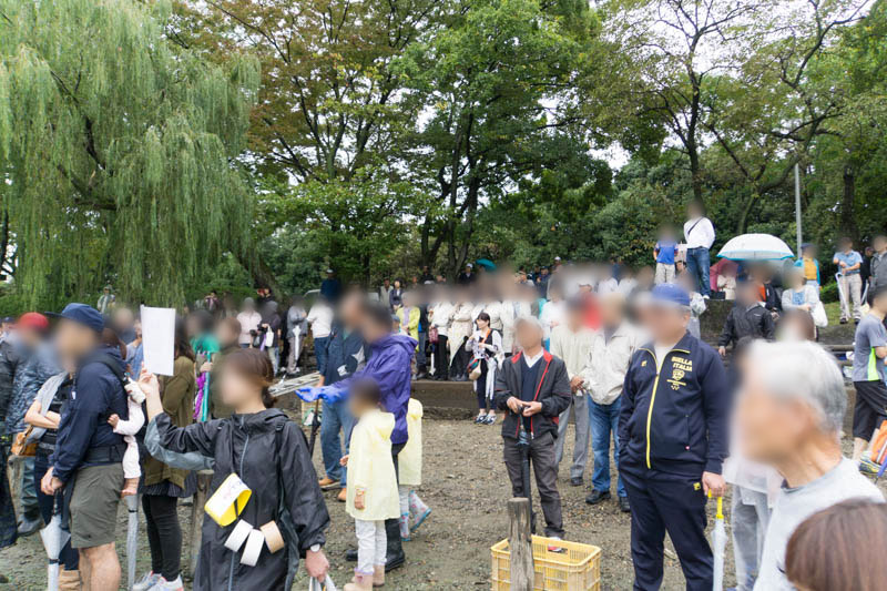 この時点での見物客の方々はこんな感じ。そもそも干上がっているとはいえ池の中に入ることができるという時点で僕はちょっとテンションがあがりました。