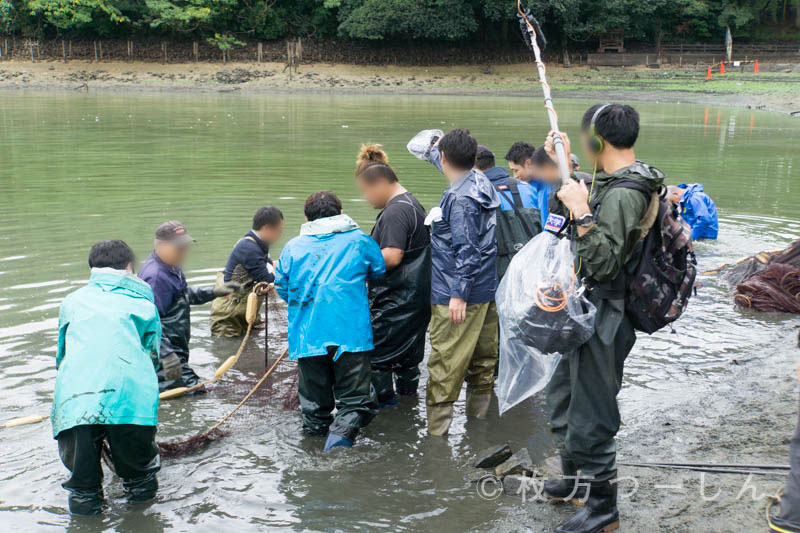 ここで一般の方が活躍するターン!みんなで網をひっぱります。