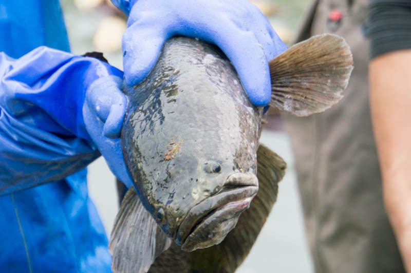 網の横では謎の水の動きが。魚が網を抜けたりしているんでしょうか。