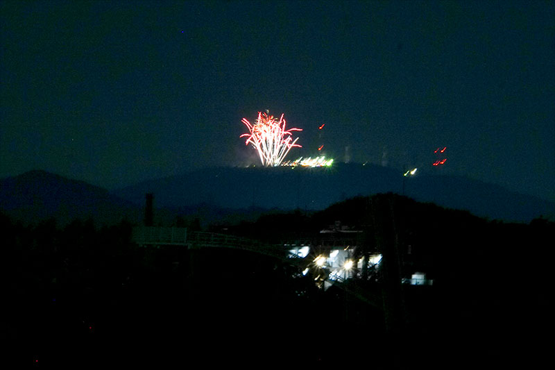 ちなみに今回もめっちゃズームしていまして、肉眼で見たら何か山の上で花火っぽいのが光ってる、くらいの感じ。あんまり期待してはいけません。