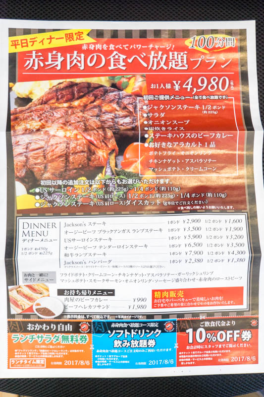 松井山手の「ジャクソンビーフステーキハウス」が赤身肉の食べ放題はじめてる。平日ディナー限定