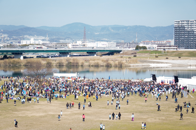 枚方の淀川河川敷が発着点の、枚方市内外から多くの人が集まる一大イベントです。(→これまでの寛平マラソンのようす)