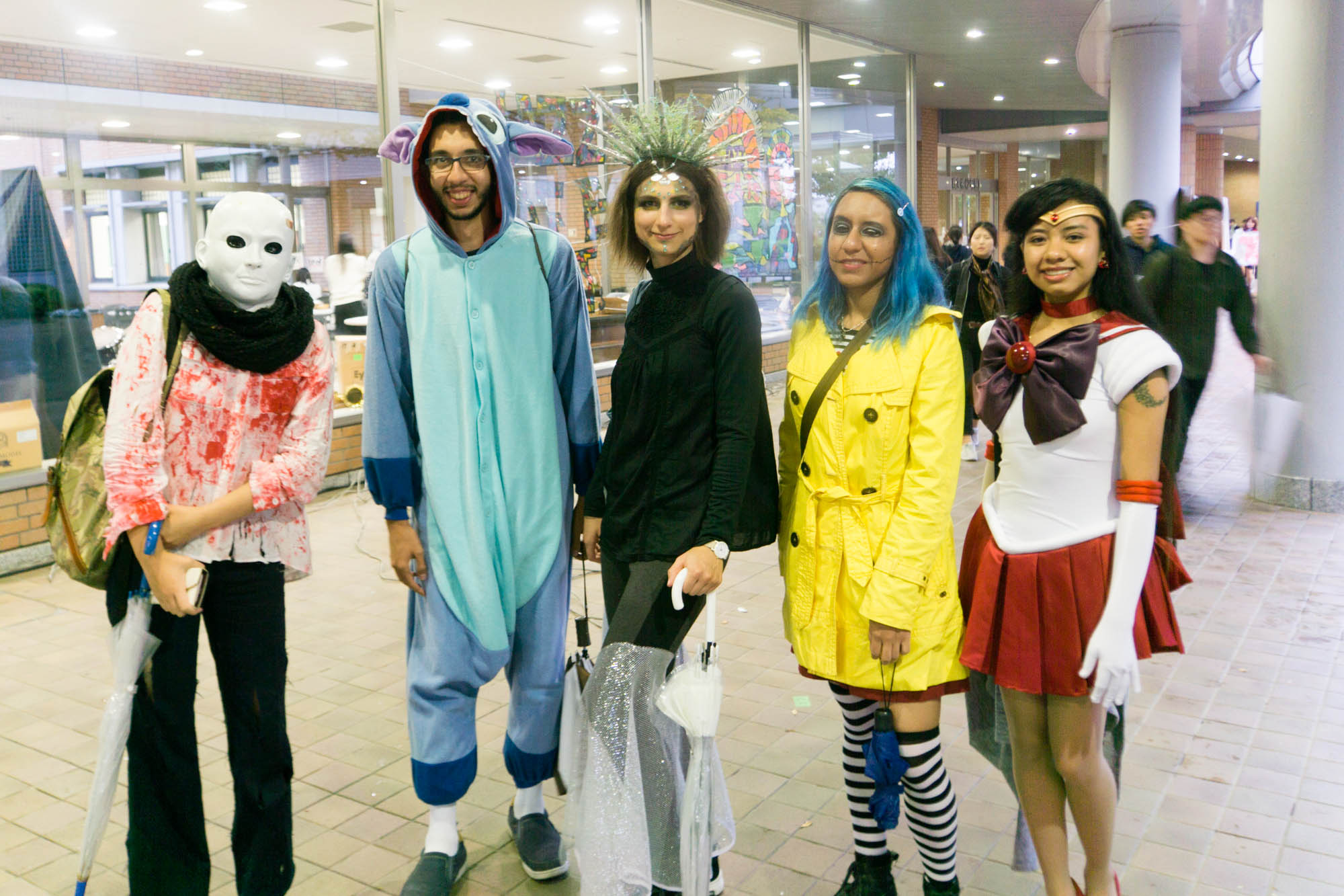 外国人の方々。スケキヨ、スティッチ、わからず、わからず、セーラーマーズ。