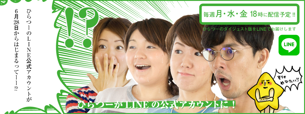 2015年8月から2016年3月末まで期間限定で週1で配信していた「週刊ひらかたヨンデー」が、このたびグレードアップして枚方つーしん「LINE公式アカウント」でのニュース配信がスタートします!
