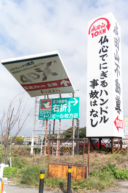 その他にも僕クロが枚方市内を移動していると工事現場を仕切っていたフェンスが壊れていたり、事故の目撃情報を求める看板が横たわっている場面も。