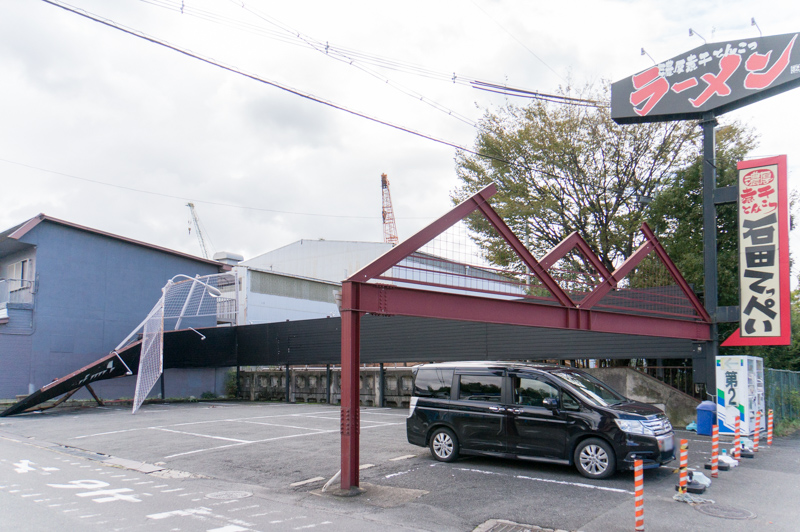 国道1号線沿い招提にあるラーメン店「石田てっぺい」の駐車場。