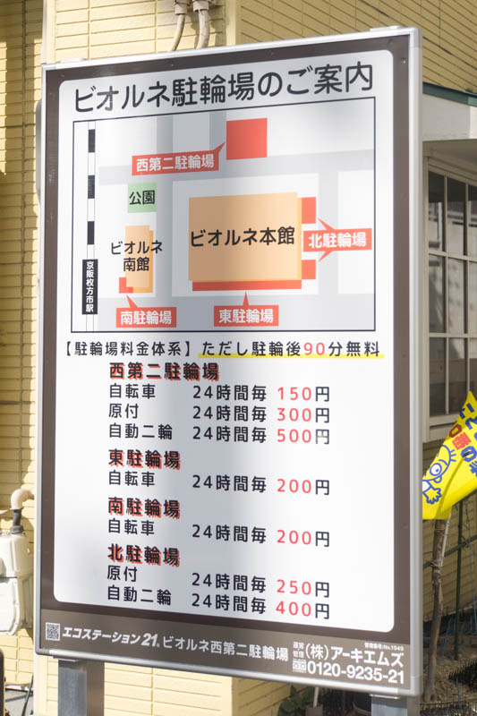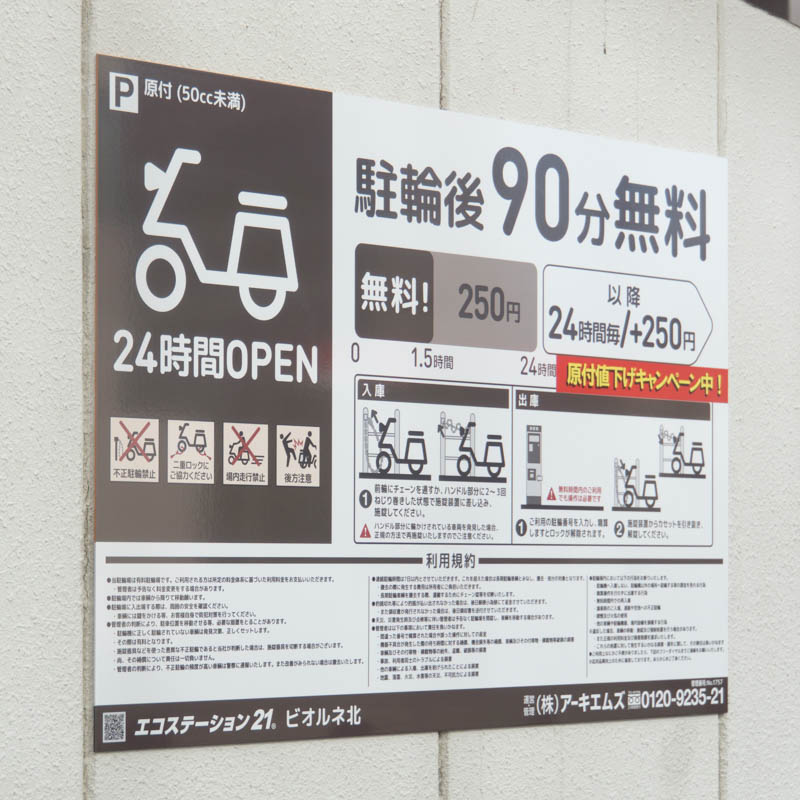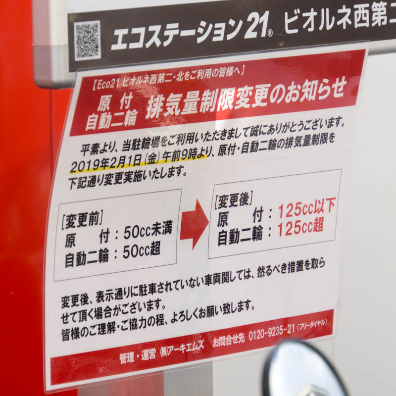 ビオルネ横の駐輪場の原付スペースに小型二輪も停められるようになるみたい。2月1日から