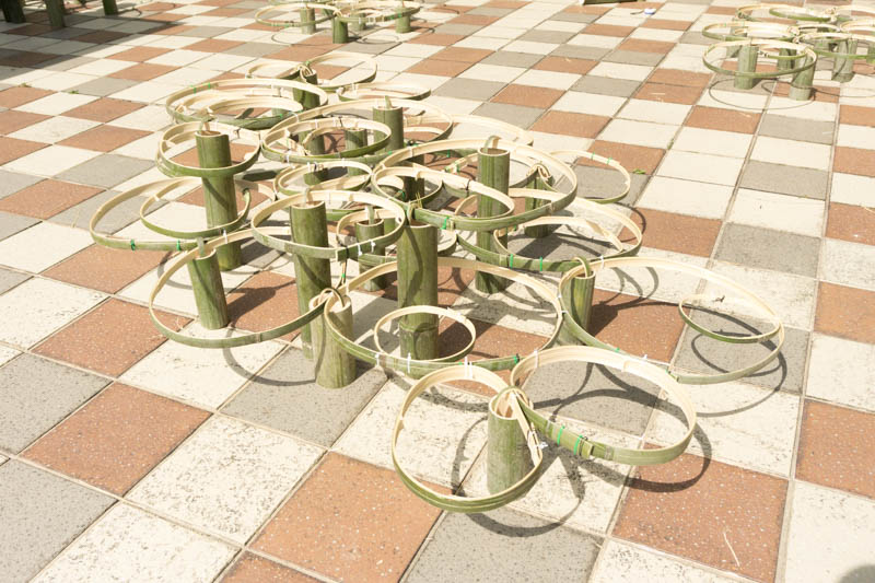 そんな感じでエンジョイする高山竹林園。竹をつかったアート的なモノも。