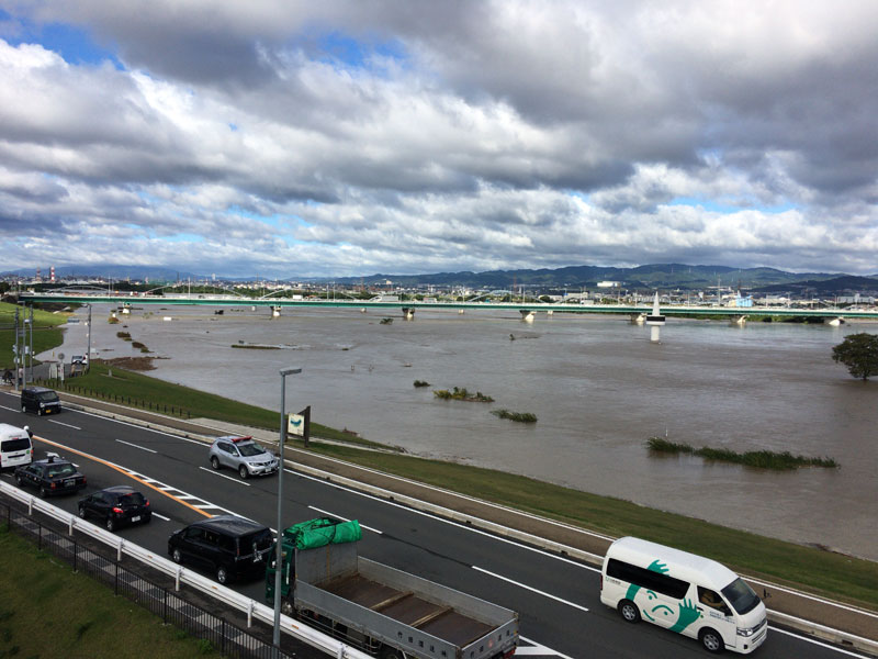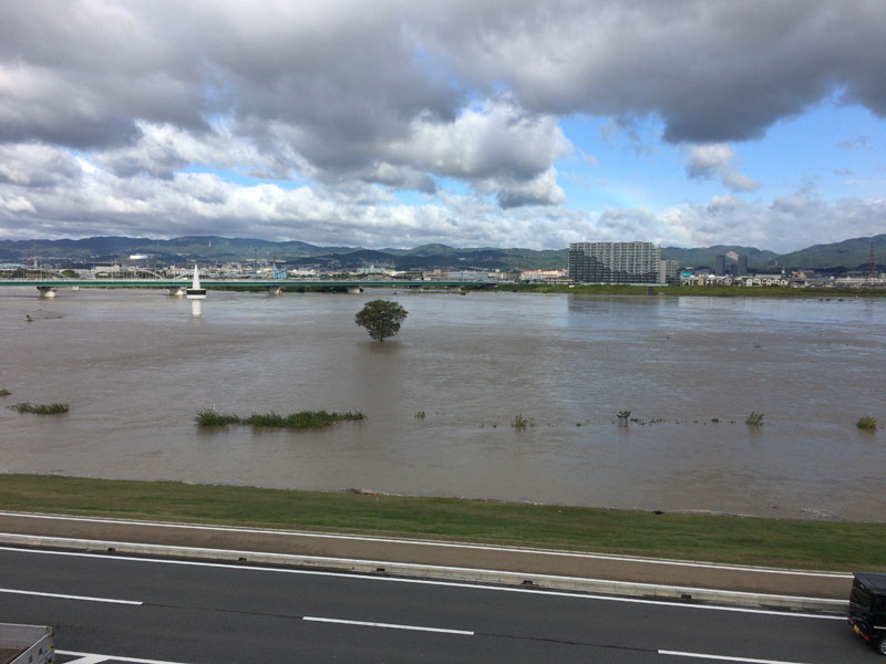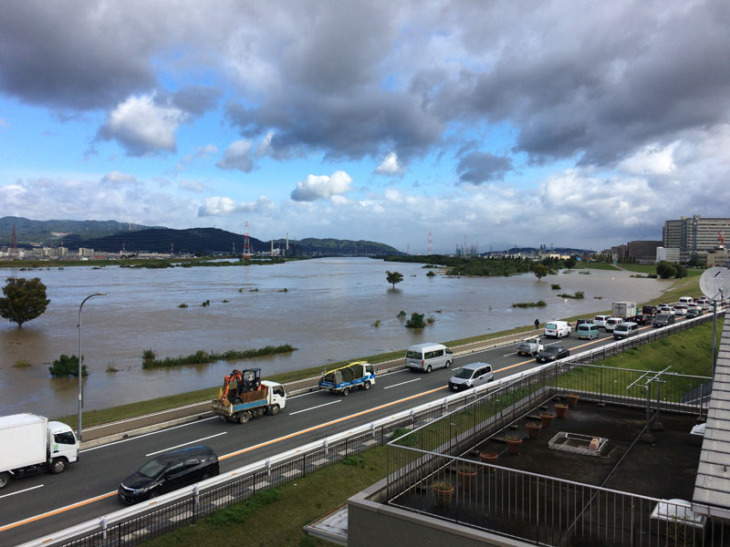 淀川河川公園枚方地区が台風の影響で水没しています。