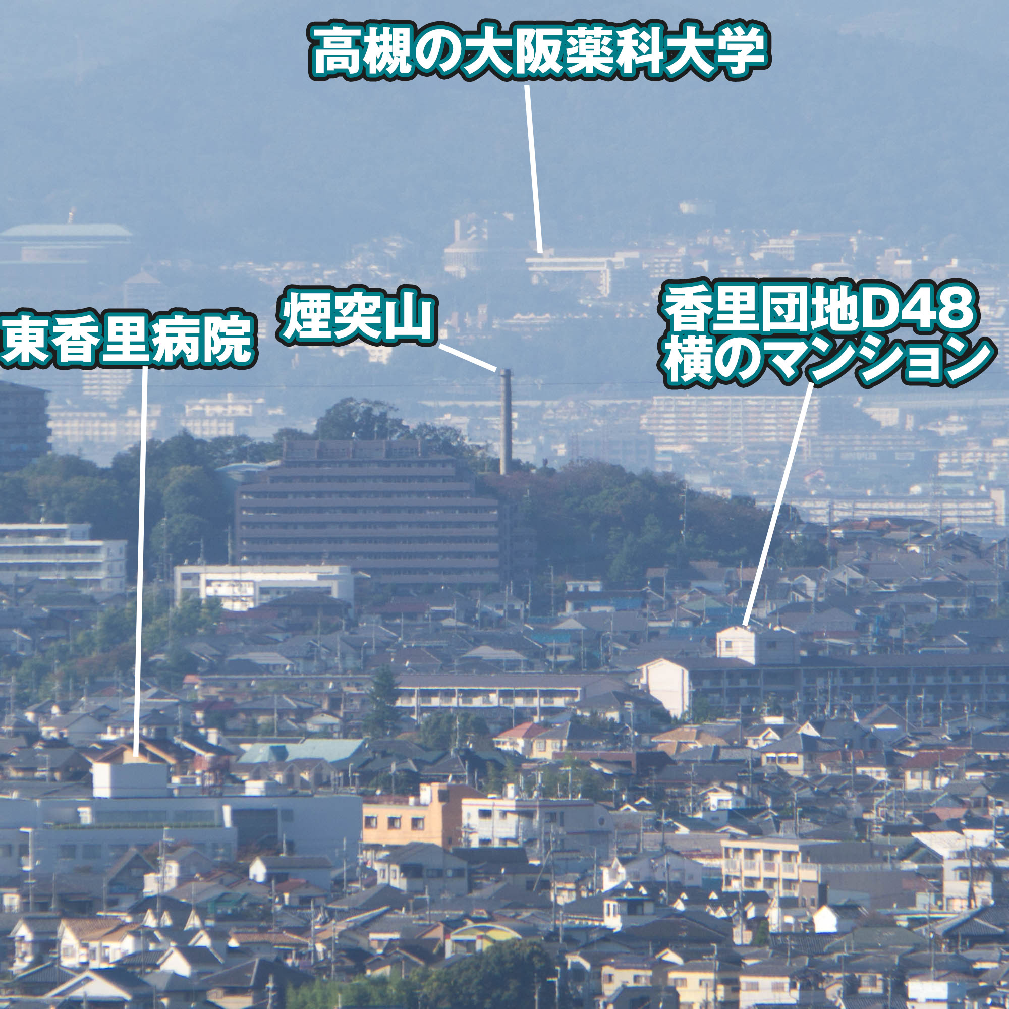 中宮北町のアミティという団地からヒョコッと啓光学園と枚方城が顔を出しているスタイルです。