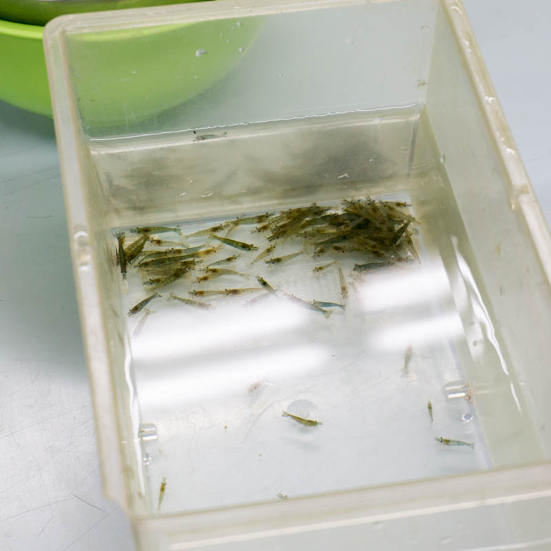 このヌマエビ単体で食べてもらいました。めっちゃちっさいです。